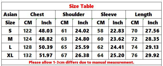 - Measure your measurements to buy the right size, if you don't have time to measure, you need to buy a bigger size than usual. (For example, if you usually wear M, buy L )