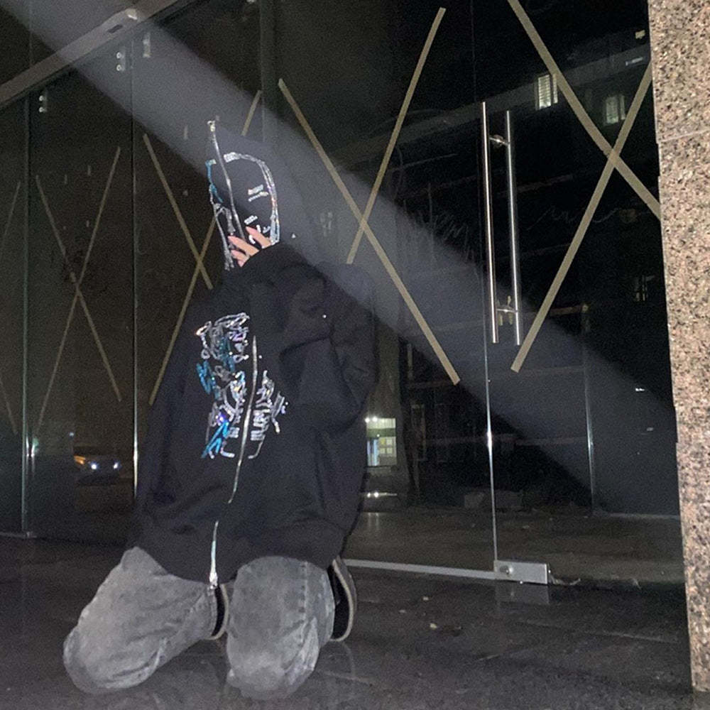 🥶New Rhinestone Skull Zipper Loose Sweatshirt Coat