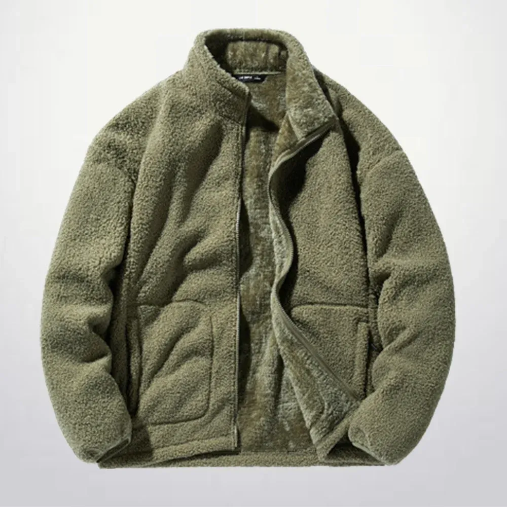 Men's versatile stand collar plush solid color coat