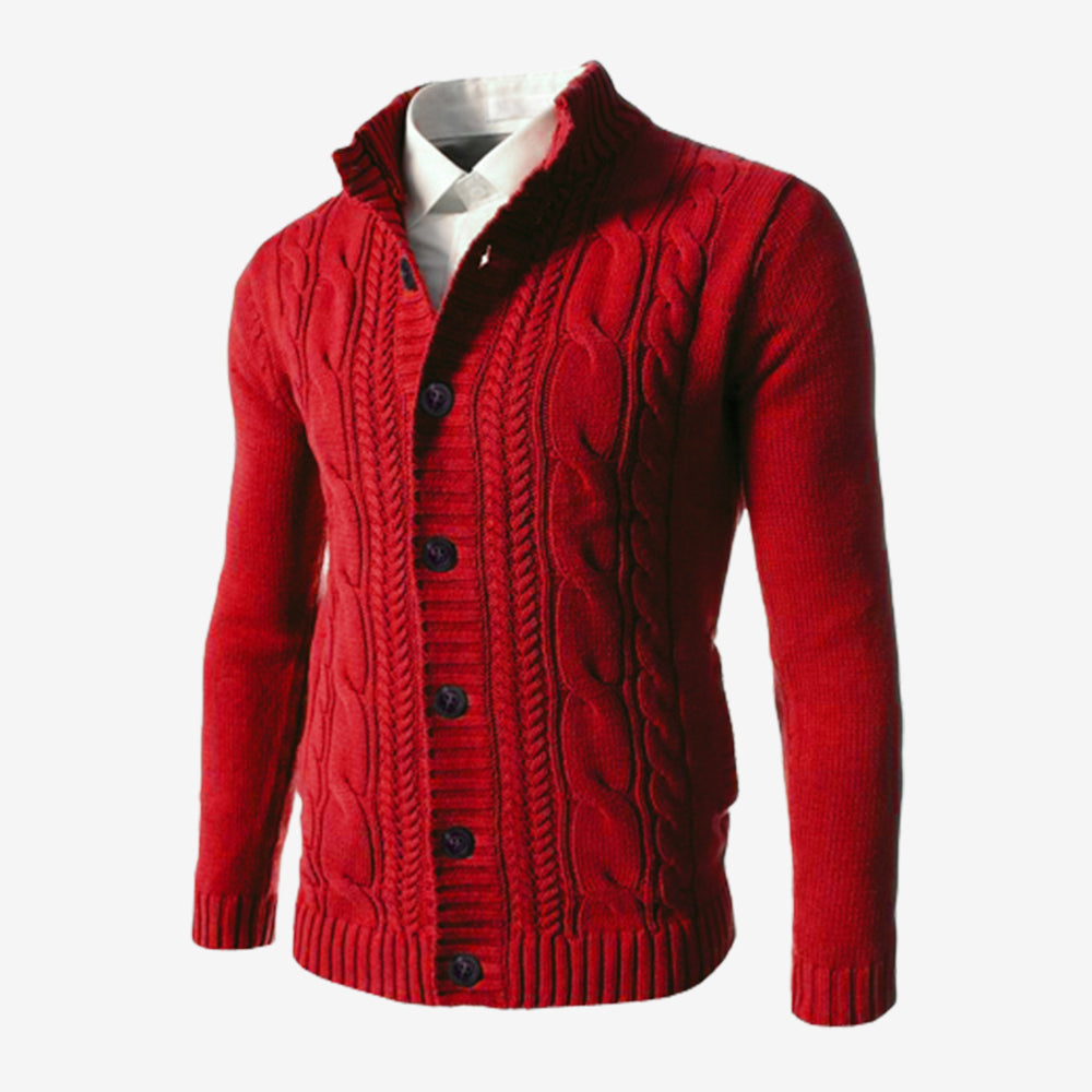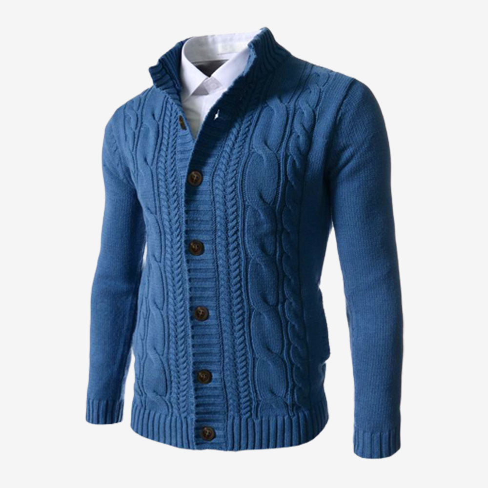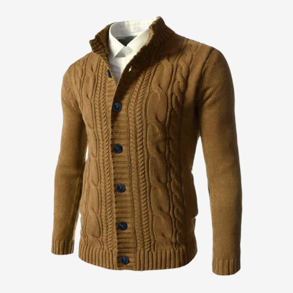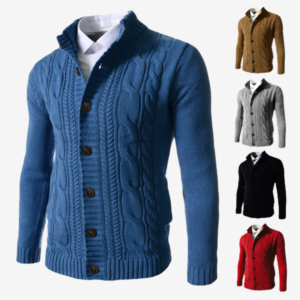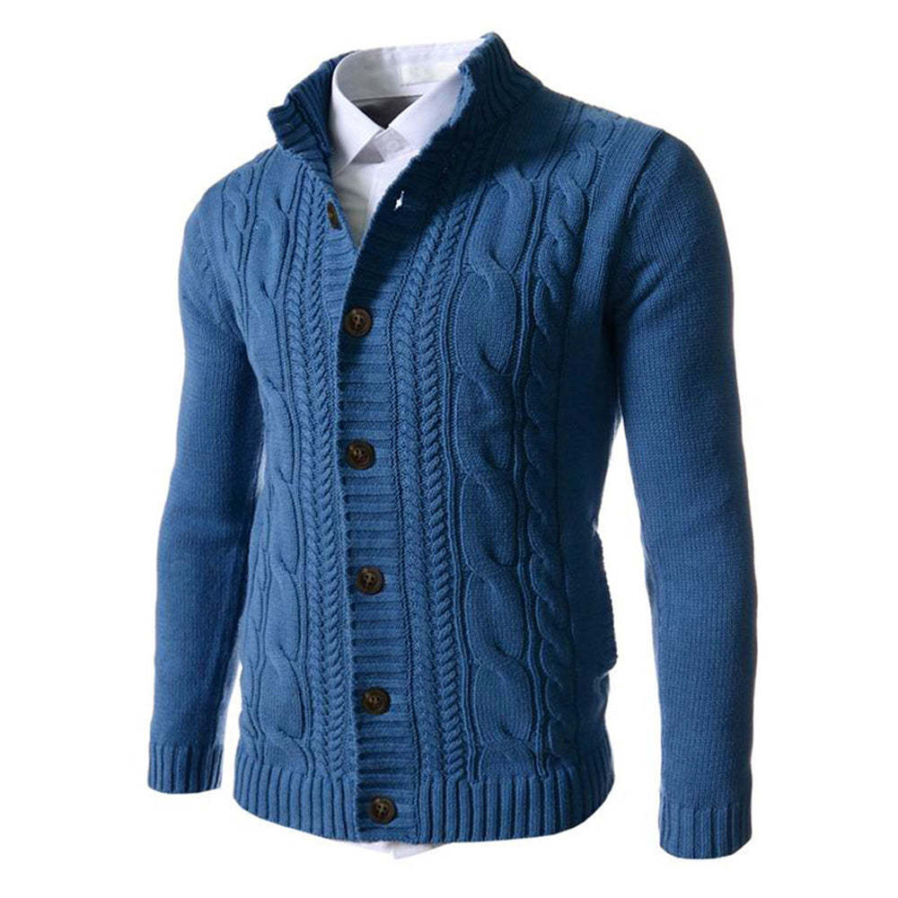 Men's Standing Collar Twisted Button Sweater Cardigan