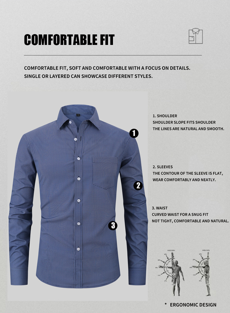 Check Print Business Casual Stretch Long Sleeve Shirt 👔Features Specific Gender: male Weight: about 300 grams Material: four-way stretch fabric Sizes: Small - 3XL Color: as shown Size chart Measure your measurements to buy the right size, if you don't have time to measure, you need to buy a bigger size than usual. (For