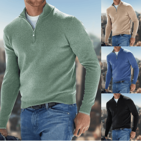 1 * New Men's Solid Color Long-Sleeved Terry Towelling Zipper Bottoming Shirt