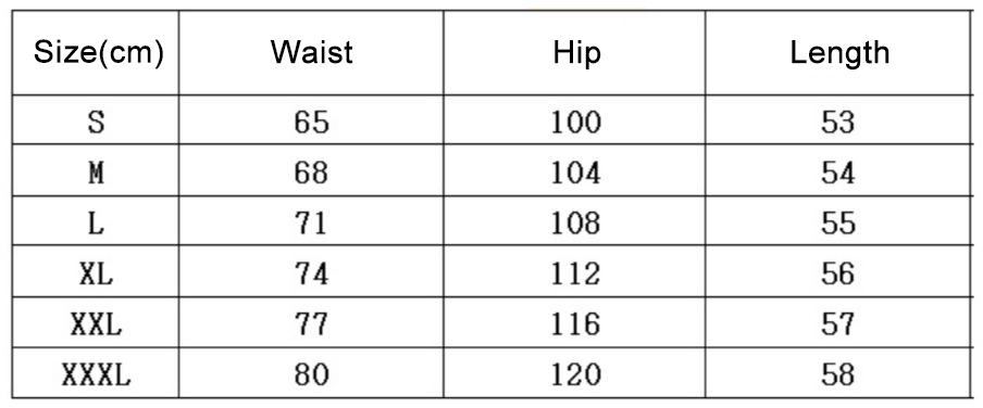 Size chart: