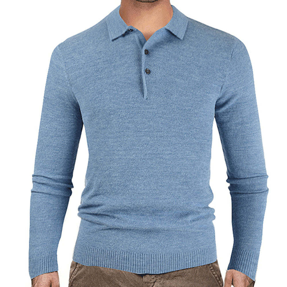Men's Button Lapel Solid Color Slim Knitted Base Layer Shirt