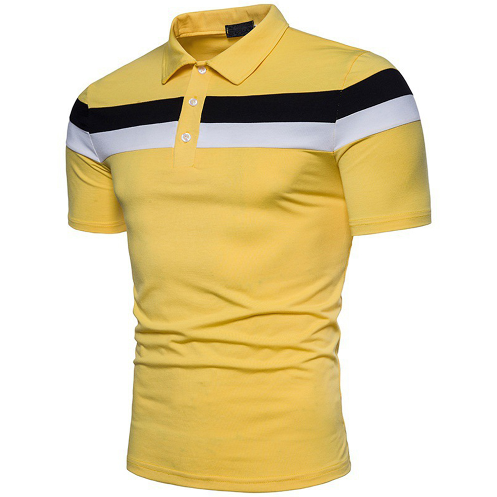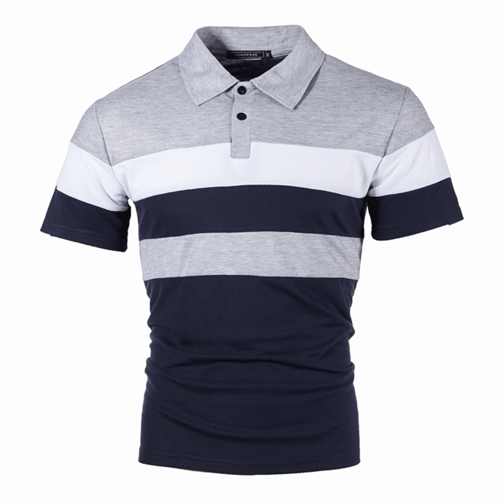 Striped color matching fashion lapel polo shirt men's short sleeves