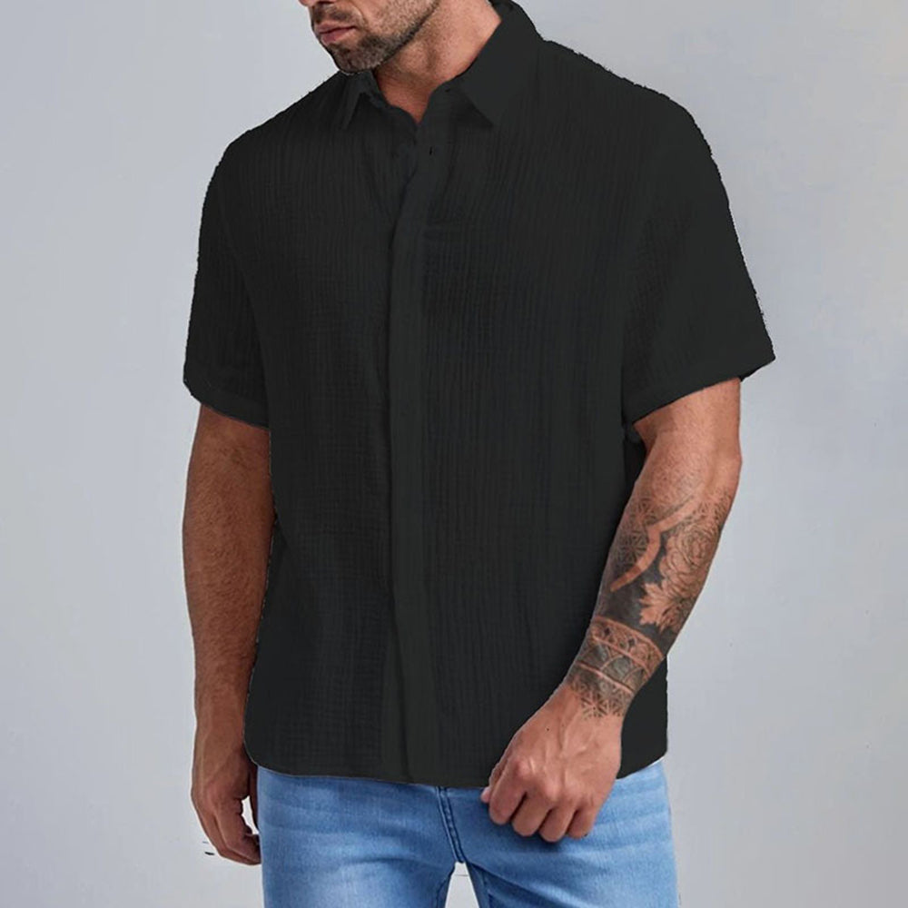 New Men's Slim Lapel Collar Pleated Short Sleeve Shirt Features: 🥝Comfortable fabric: Made of high-quality pure cotton fabric, soft to the touch, skin-friendly and light, moisture-wicking, not easy to fade and deform, wear-resistant and durable, not easy to pilling, more breathable and comfortable to wear. 🥝 Design : T