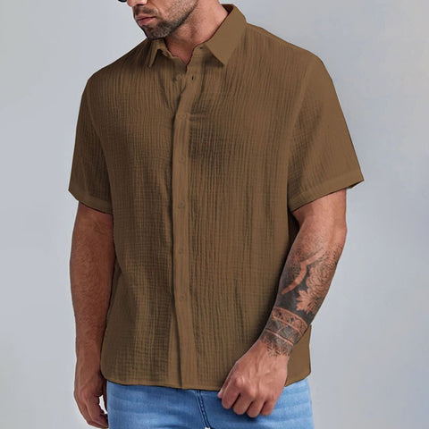 New Men's Slim Lapel Collar Pleated Short Sleeve Shirt