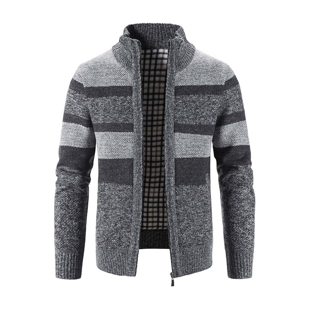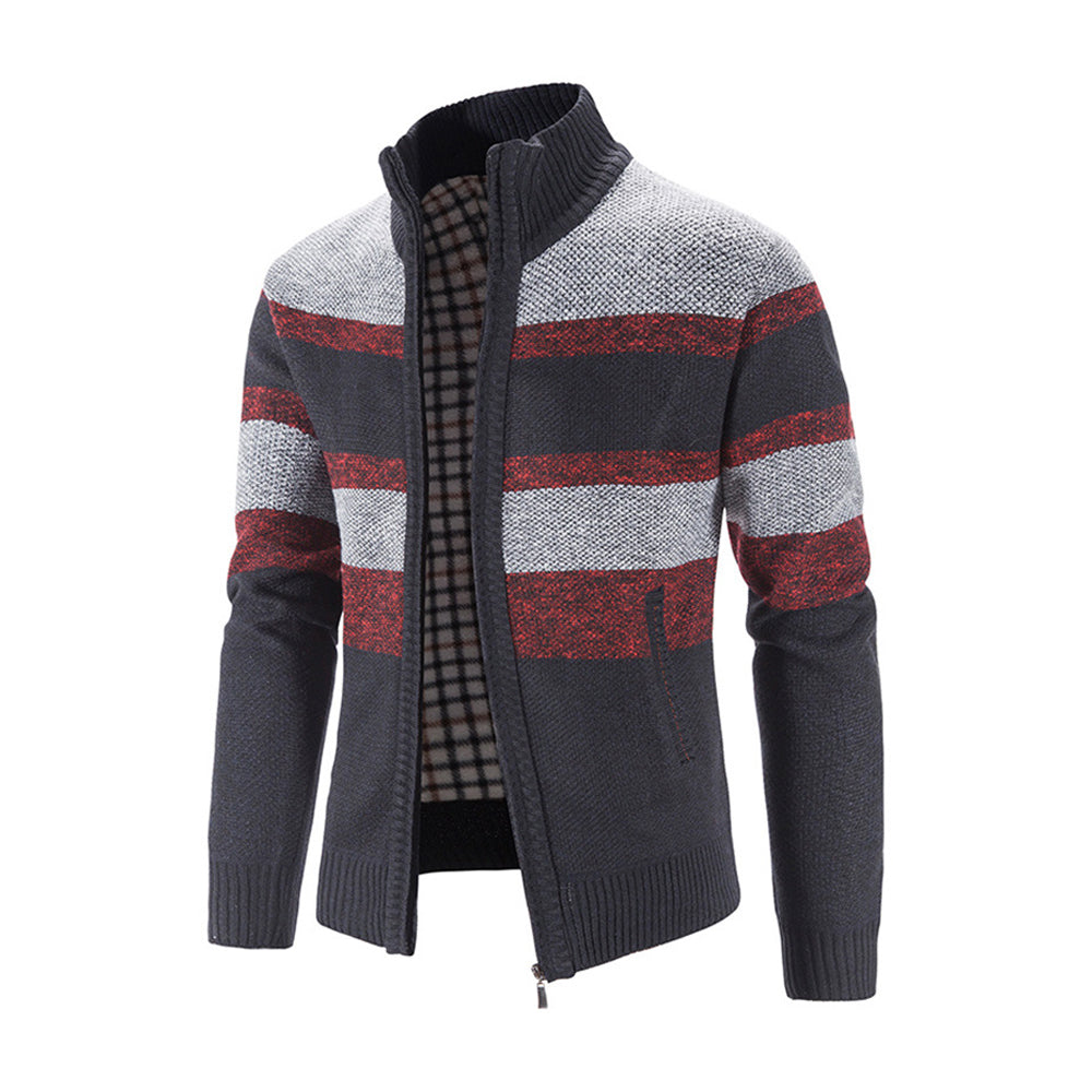 • Men's Fashion Stripe Colorblock Sweater Cardigan Jacket