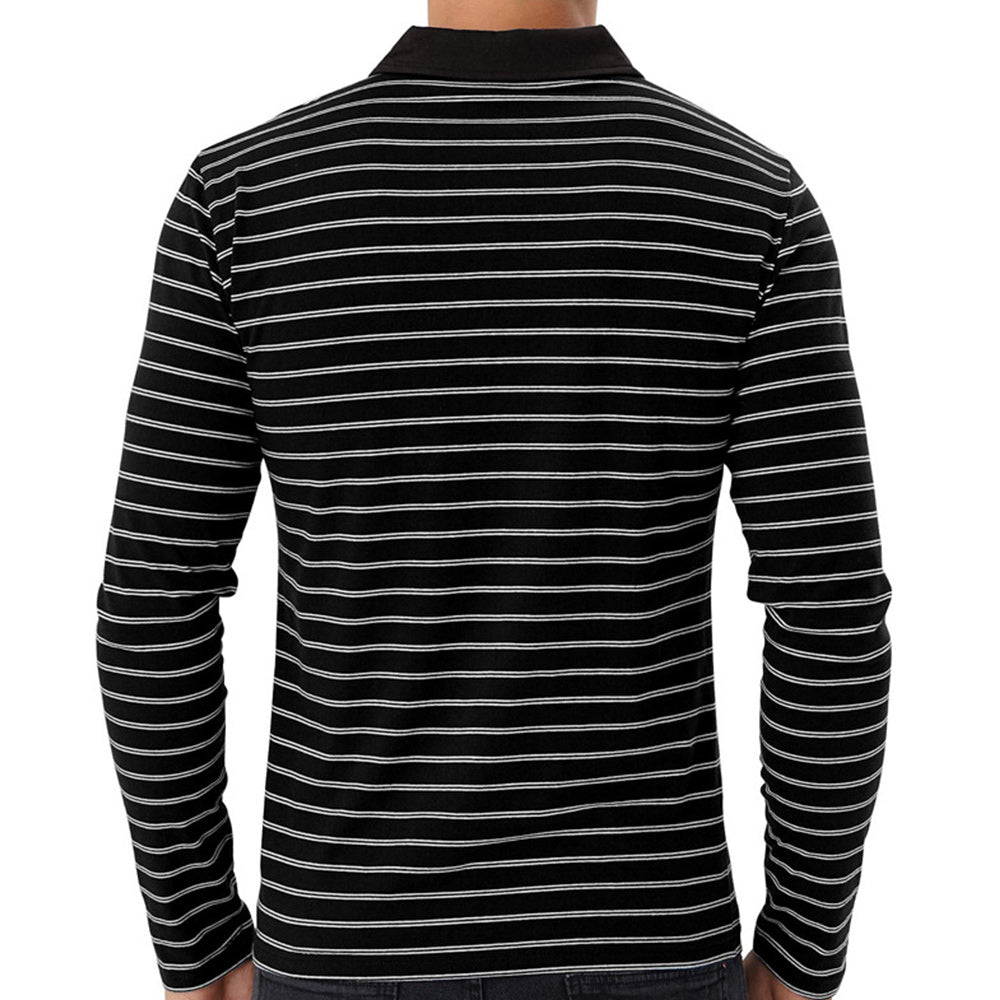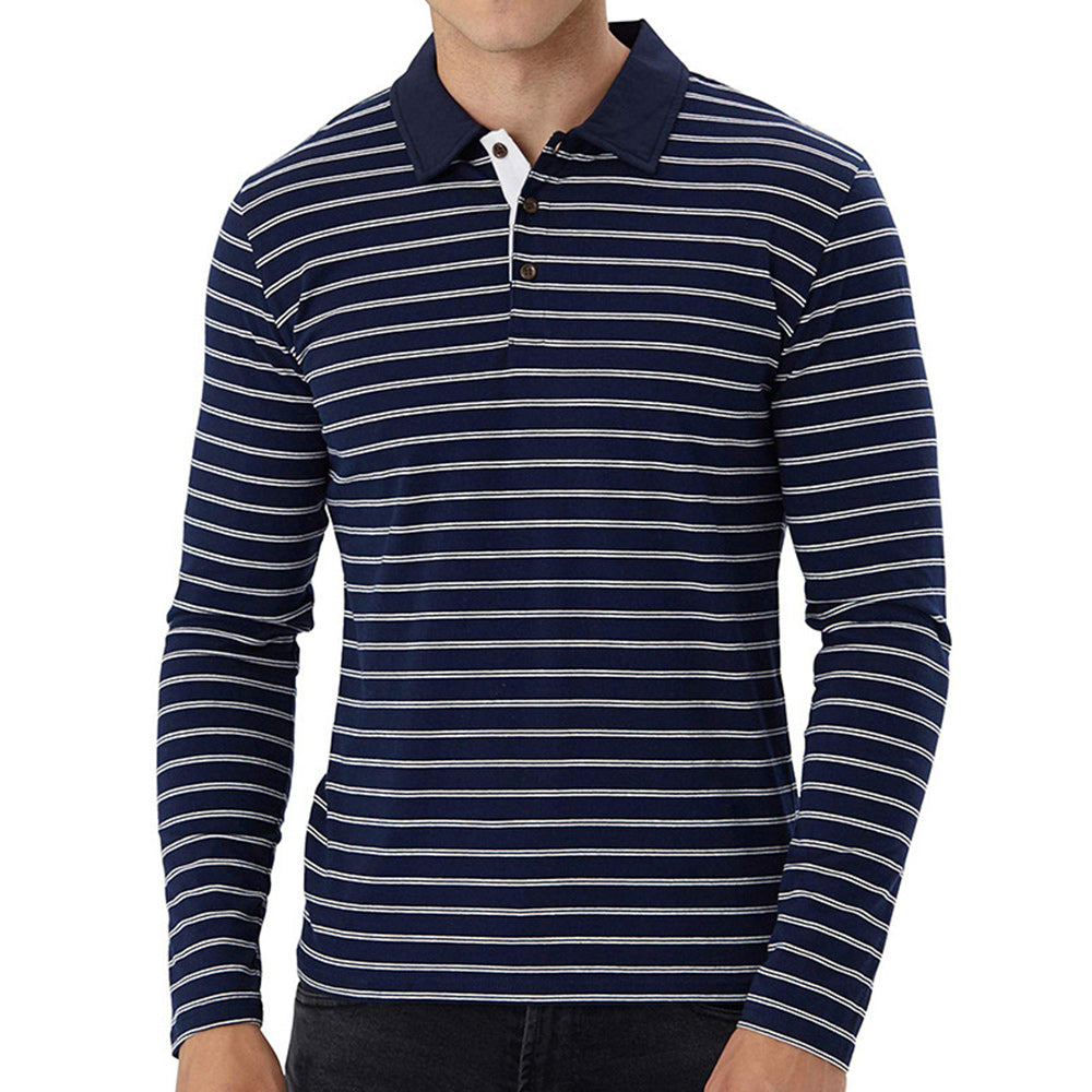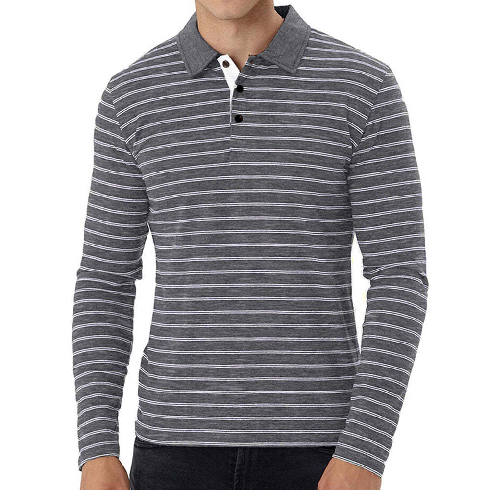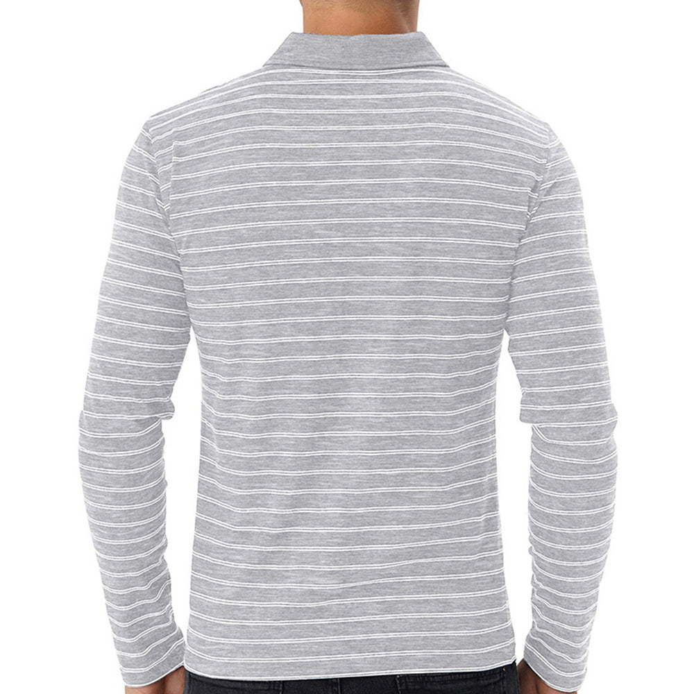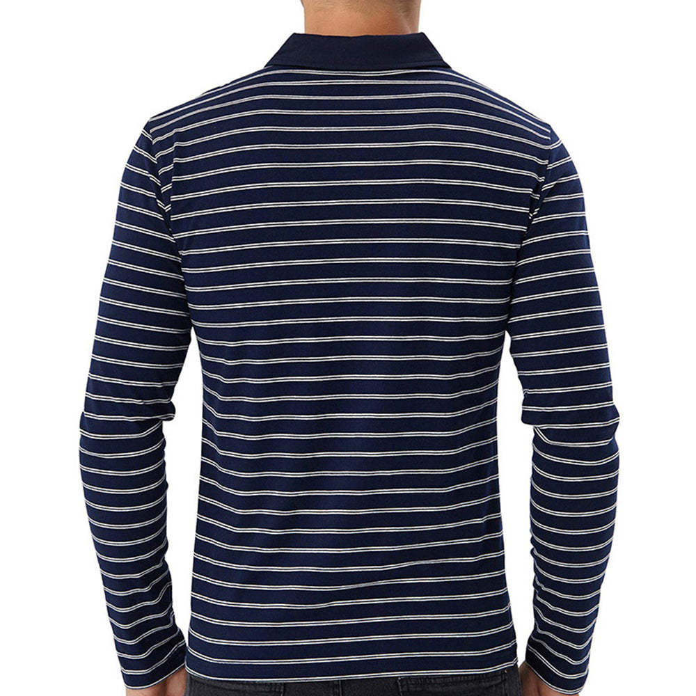 New Men Striped Casual Breathable Long Sleeve Polo Shirt