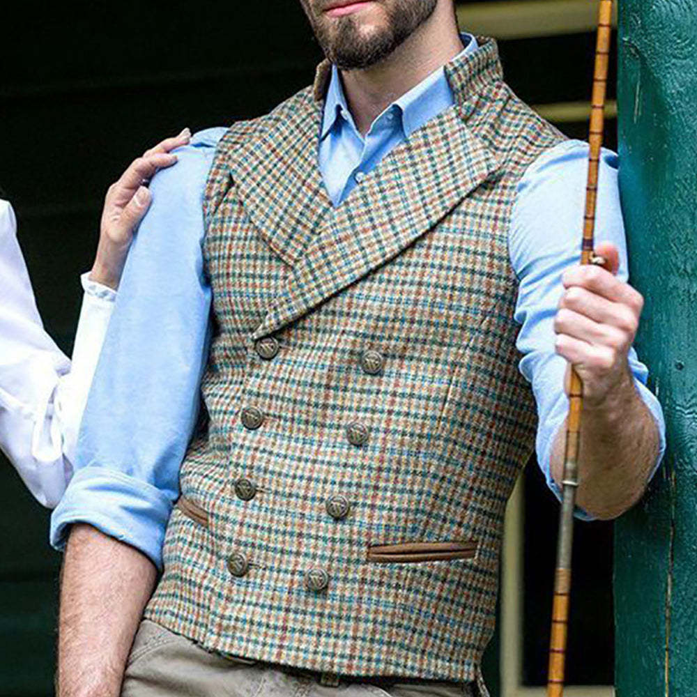 Men's Lapel Slim Fit Check Vest