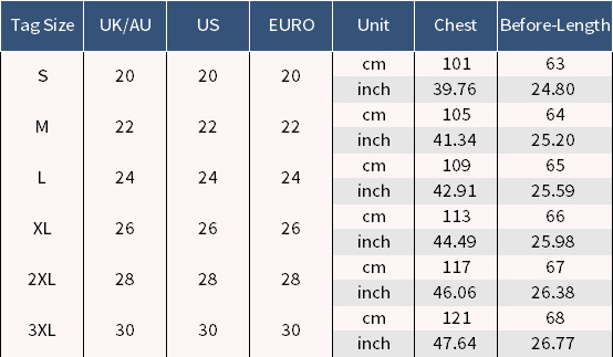 Please read the product size chart carefully before placing an order to ensure the fit. If you want a looser feel, it is recommended to size up.